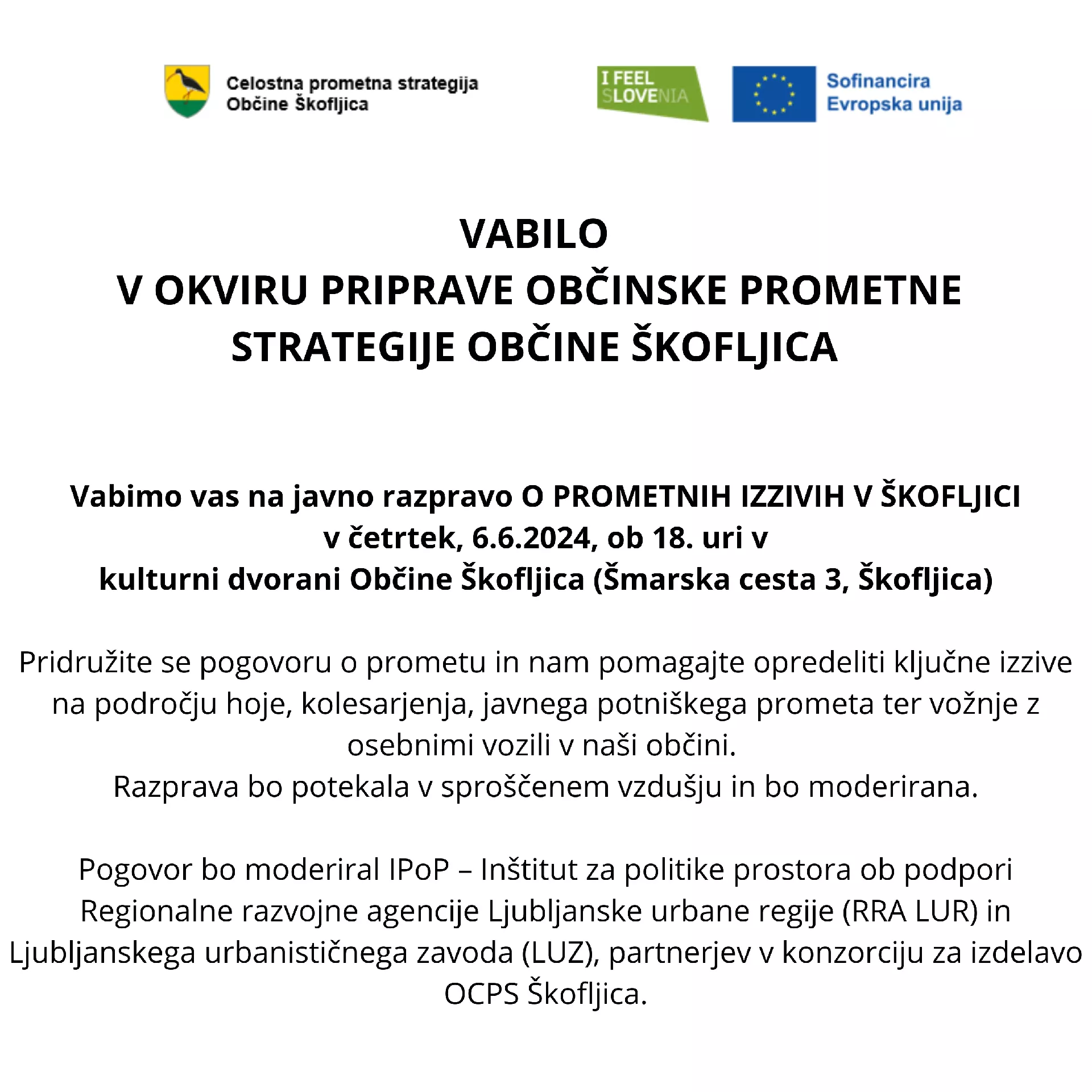 V Občini Škofljica bomo zasnovali Občinsko celostno prometno strategijo (OCPS), s katero bomo lahko bolje načrtovali novo infrastrukturo in izboljšali učinkovitost obstoječe ter odprli več prostora za trajnostno mobilnost. Z raznolikimi ukrepi bomo naslovili izziv zmanjševanja tranzitnega prometa skozi občino, prispevali k zmanjševanju emisij iz prometa v okolje in manjši porabi omejenih virov energije, občanom, ki si tega želijo, pa omogočili izbiro aktivnega življenjskega sloga tudi na vsakdanjih poteh. Strategija bo pripomogla k ureditvi prometa, ki bo omogočal prijetnejšo izkušnjo in oblikovanje kakovostnega in občanom prijaznega javnega prostora.