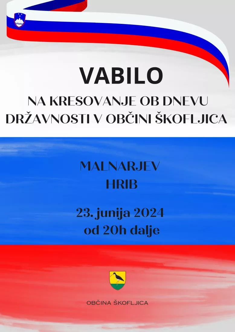 Vabimo vas, da se nam pridružite na kresovanju ob Dnevu državnosti, ki bo v petek, 23. junija 2024, od 21. ure dalje na Malnarjevem hribu.