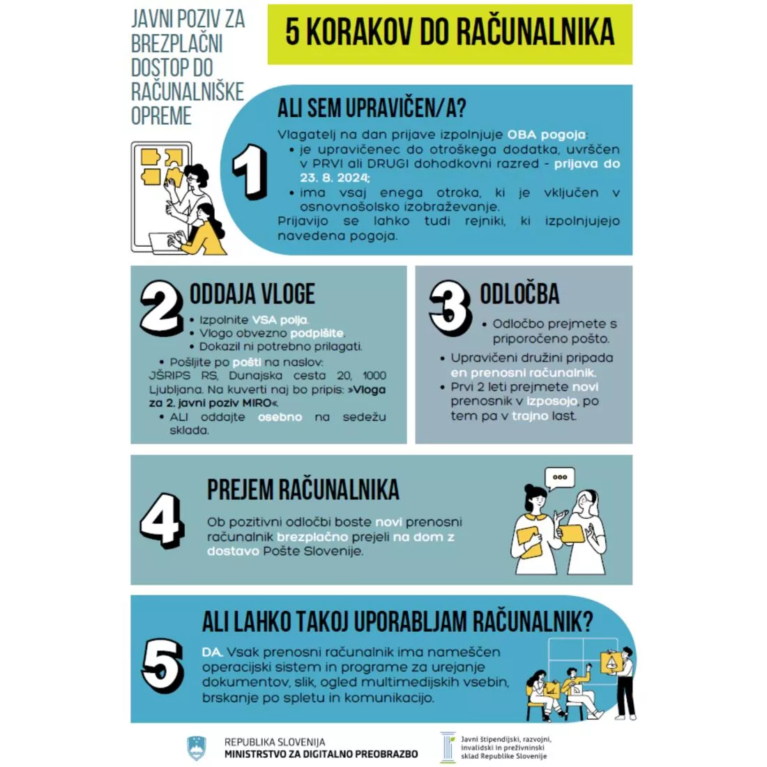Vlogo je možno oddati do razdelitve razpoložljive računalniške opreme, vendar najdlje do 23. 8. 2024.